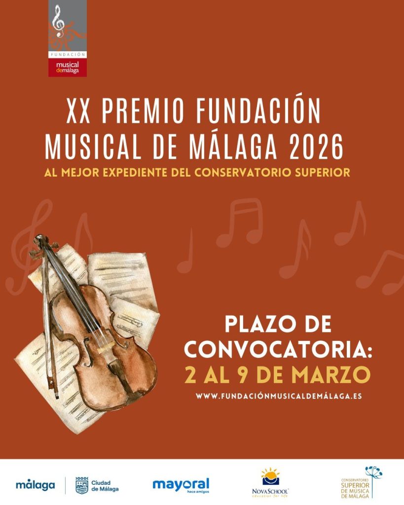 La Fundación Musical de Málaga y el Conservatorio Superior de Música de Málaga convocan el XX Premio Fundación Musical de Málaga 2026 al mejor expediente académico dotado con 15.000 €.